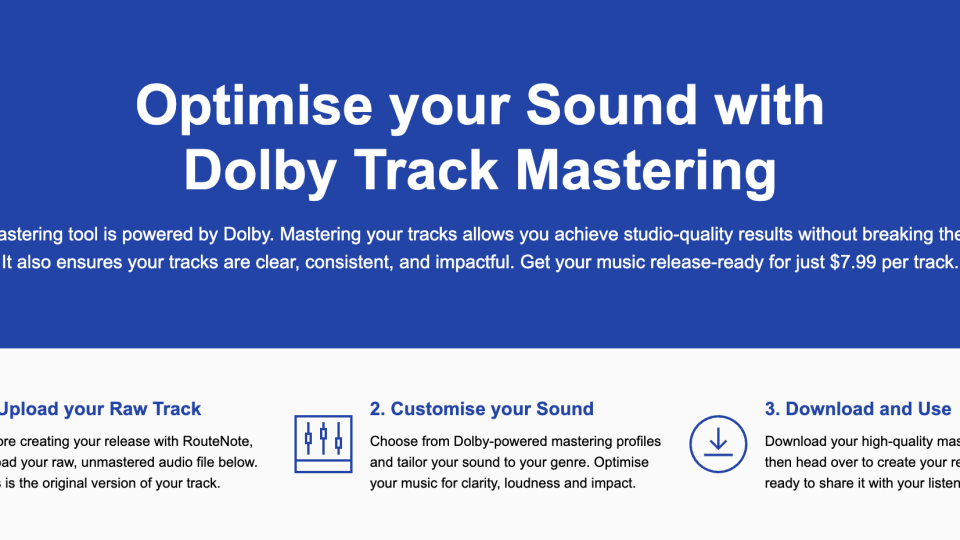 RouteNote has introduced a new Dolby Track Mastering feature, providing artists with a mastering tool that instantly provides a release-ready, finished product that sounds consistent across devices, all accessible directly through our platform.