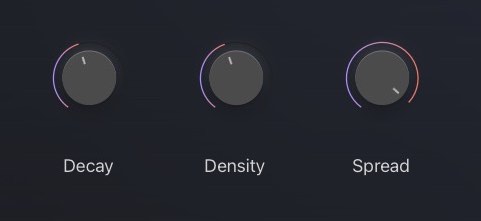 - Decay: Controls the duration of the reverb. Use smaller values for a shorter reverb tail or larger values to create large reverb-like spaces.