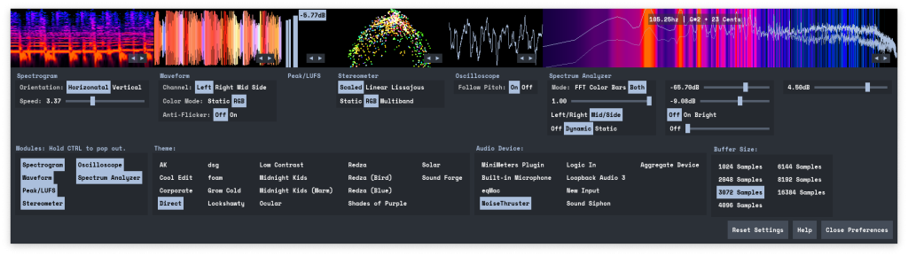 MiniMeters is a simple cross-platform audio metering application and plug-in suite for Windows, macOS, and Linux. You can monitor system audio or route audio from your DAW using its Audio Server plugin. Whether you’re producing, mixing, or referencing your favourite tracks, MiniMeters provides a visual representation of your audio in real time.